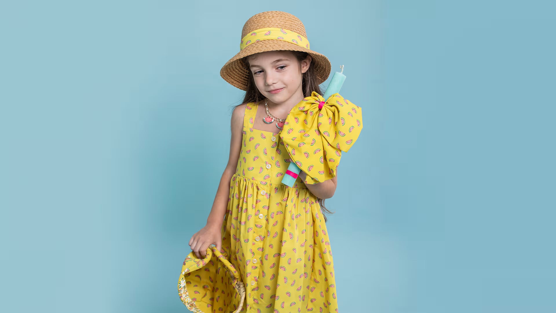 Παιδικό σετ ψάθινο καλάθι με πασχαλινή λαμπάδα Καρπούζια Perle D'azur X Jomalmi Kids Perle D'azur X Jomalmi Kids